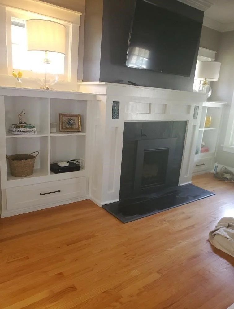 Custom Shelves, Fireplace Mantel/Trim/Decorative Tile, & Fireplace Surround